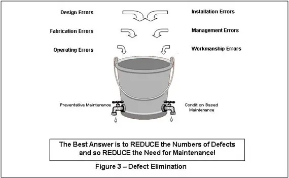 If you want superbly reliable equipment you must prevent the introduction of defects and errors at all stages of the equipment life cycle, and also act to remove the defects and errors already present in it.  By getting rid of the defects that generate future failures, you will greatly reduce your future maintenance requirements, and hence guarantee great production performance.