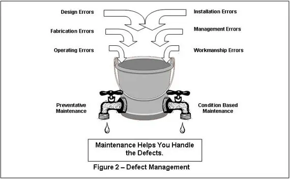 Maintenance is used to address the effects of the continually growing number of defects. You will often hear people say ‘well, add another PM into the system’, hoping that maintenance will prevent the problem in future. But all they have done is add more cost and resources requirements into the production costs! More maintenance is not the answer—it only adds more expense without benefit of defect elimination.